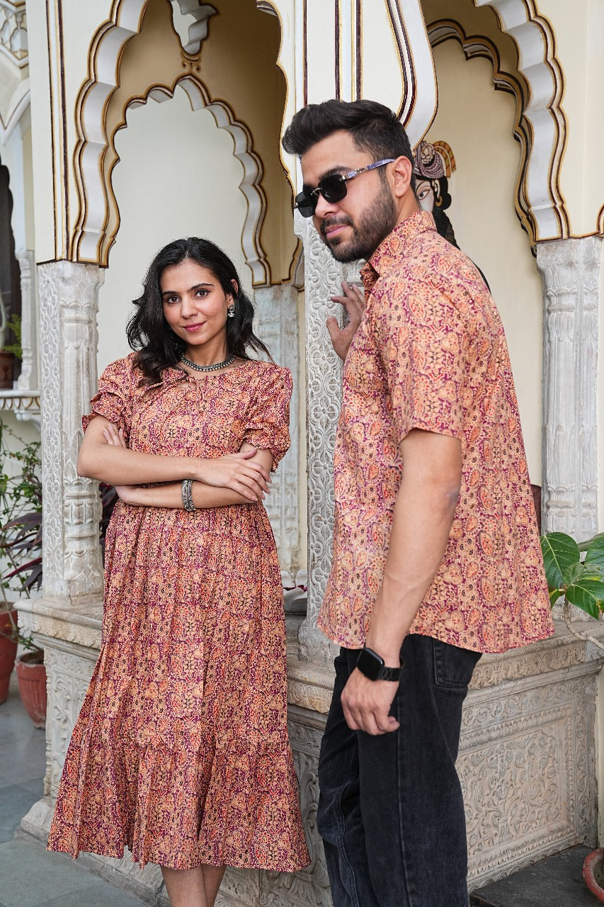 blend of earthy tones and intricate prints. DESERT ROSE BEIGE COUPLE SETPerfect for low-key festive celebrations, pre-wedding shoots, or casual traditional gatherings, this set captures the essence of timeless Indian artistry.