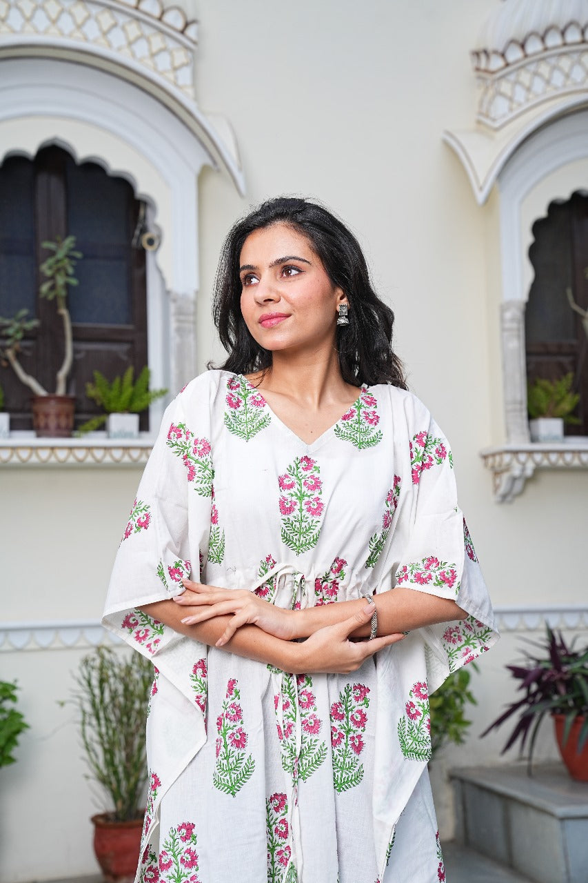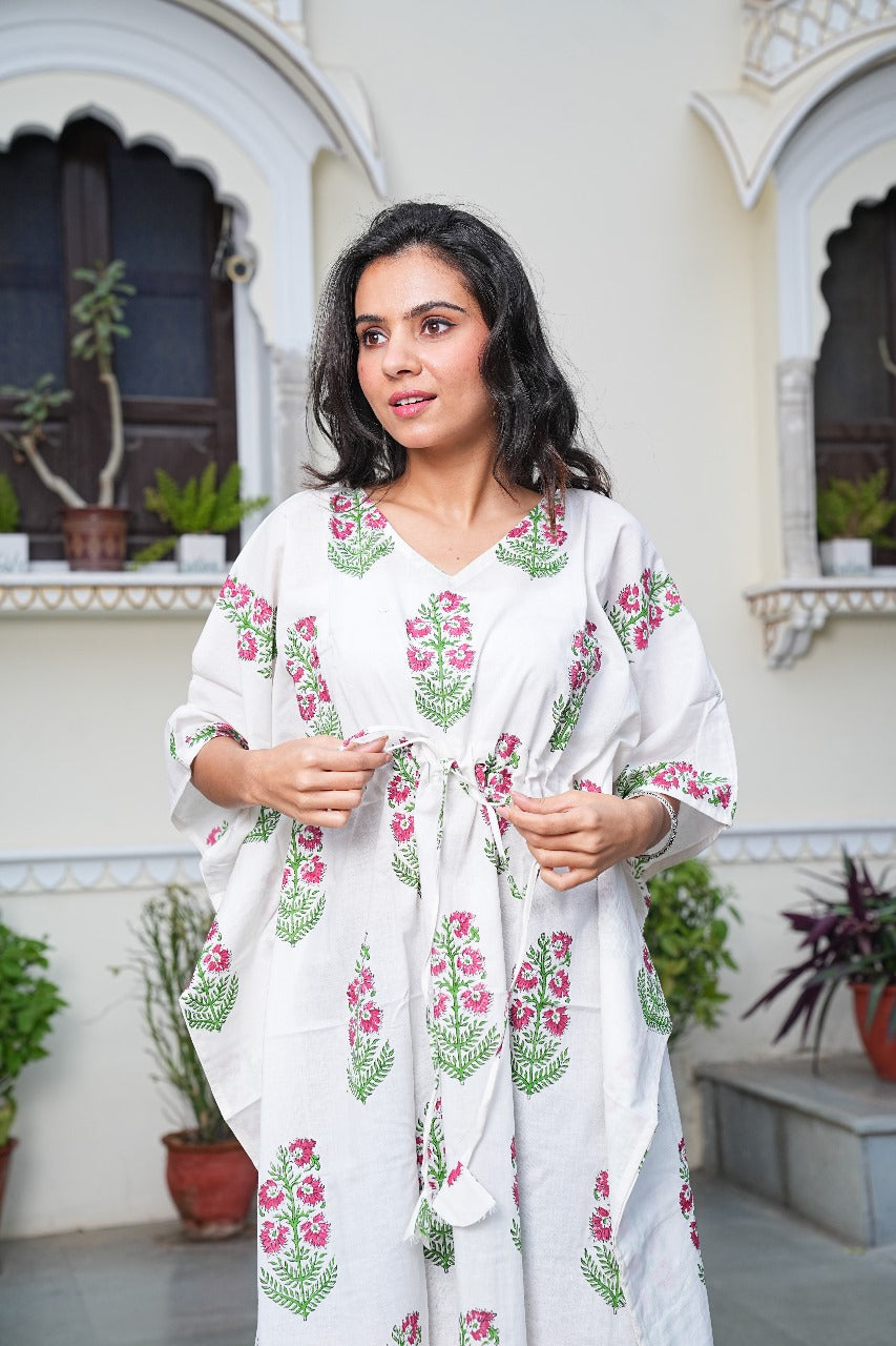 Step into effortless elegance with our handcrafted Floral Handblock Printed Cotton Kaftan, designed for the modern woman who values both comfort and style. Made from 100% premium cotton, this kaftan is soft, breathable, and perfect for lounging at home or casual day-outs.