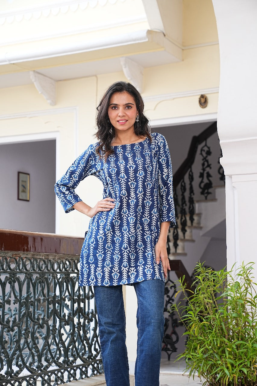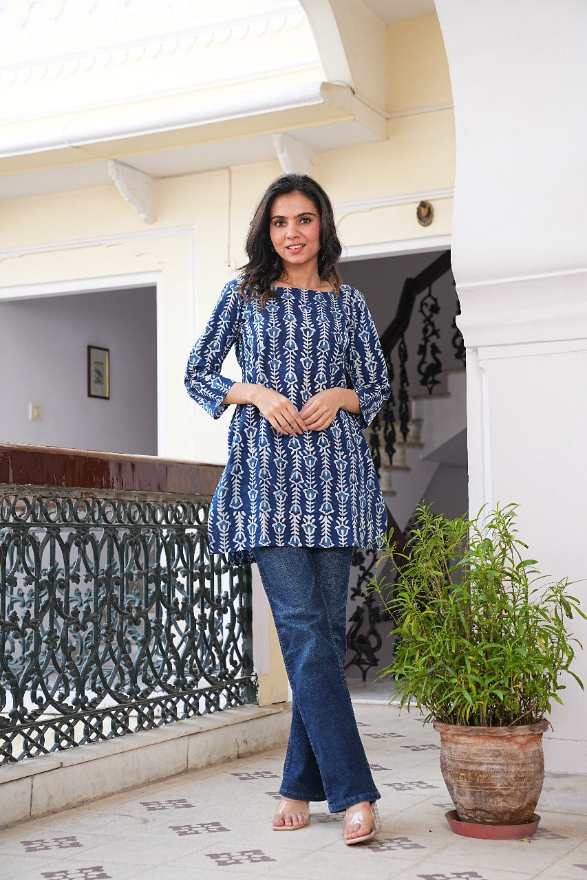 Channel effortless charm and ethnic elegance with our Indigo Blue Hand Block Printed Kurti – a timeless piece rooted in Indian tradition and tailored for modern lifestyles. The deep indigo base paired with crisp white floral motifs makes this kurti a standout for both casual and festive settings.