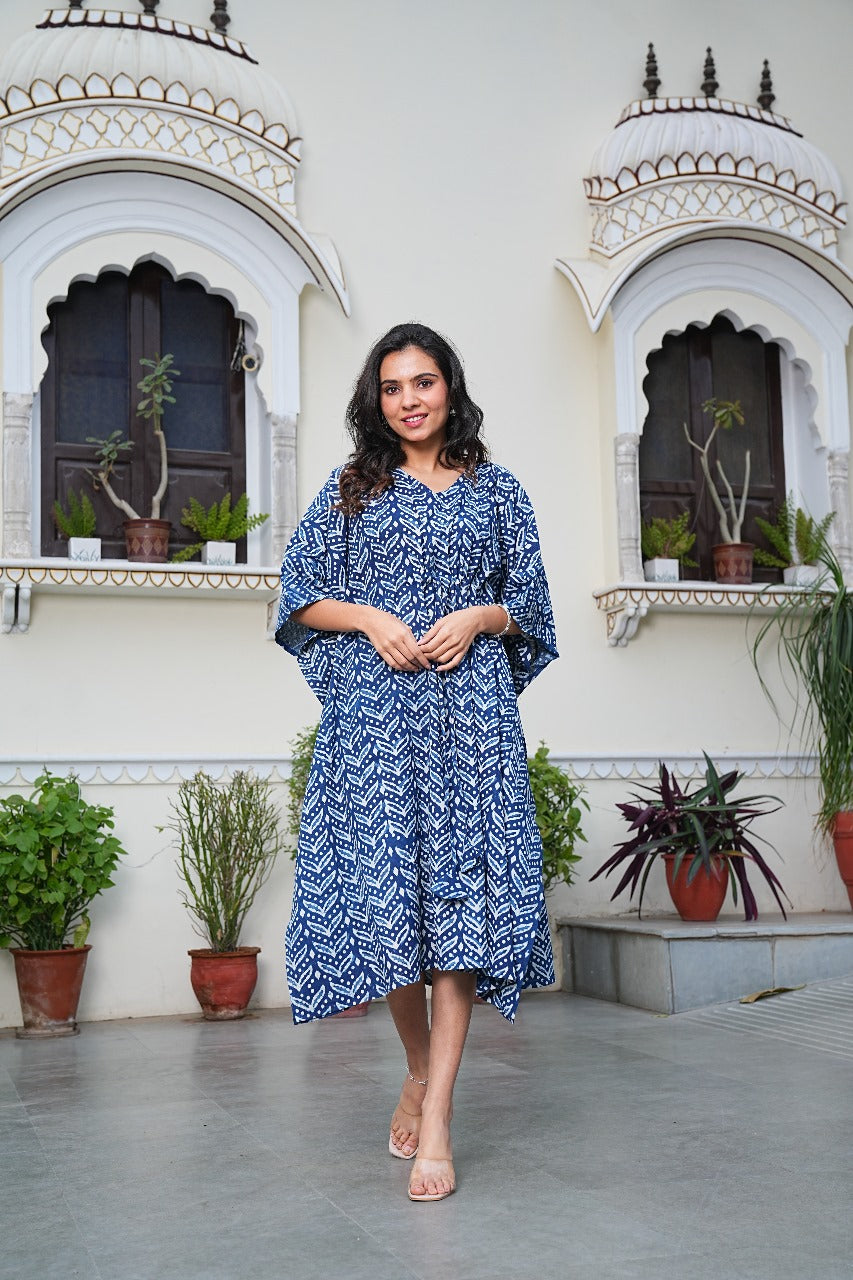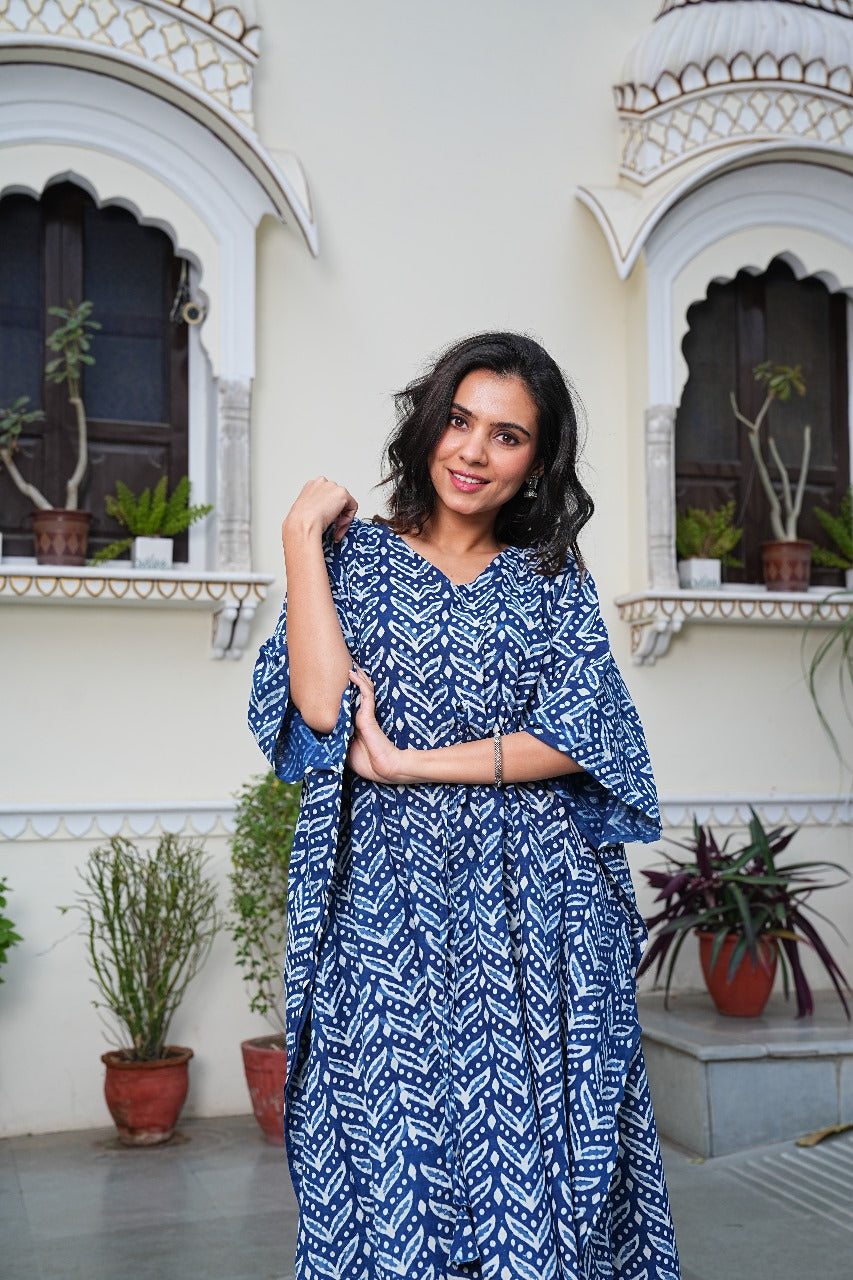 Elevate your everyday wardrobe with our stunning Indigo Handblock Printed Cotton Kaftan, a fusion of traditional Indian craftsmanship and modern comfort. Handcrafted in 100% soft cotton, this piece is a must-have for those who adore breathable fabrics and timeless prints.