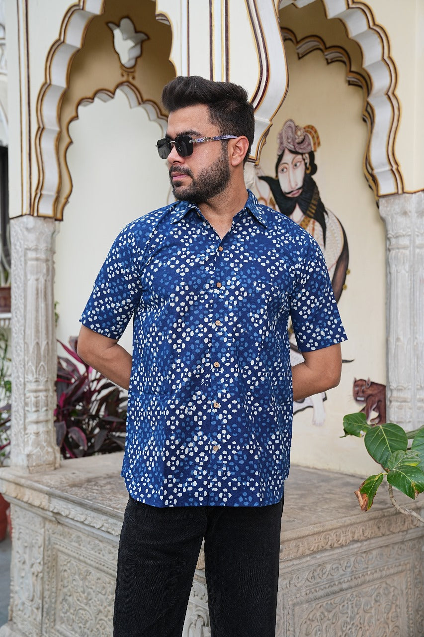 Refresh your wardrobe with timeless style and modern flair with our Handcrafted Indigo Short Sleeve Shirt. Made from premium 100% cotton, this shirt ensures unbeatable comfort, breathability, and durability—ideal for everyday wear or special casual outings.