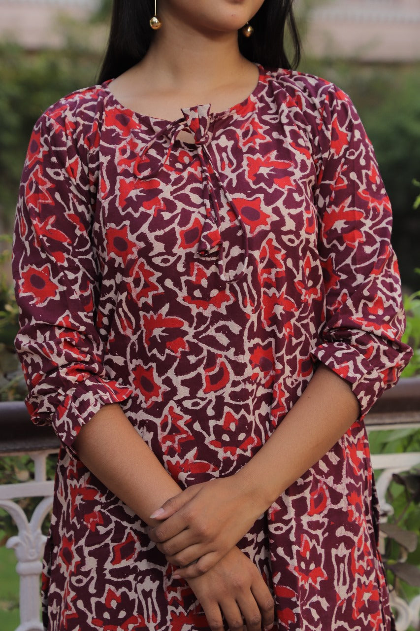 ·Color:Red with white ethnic print